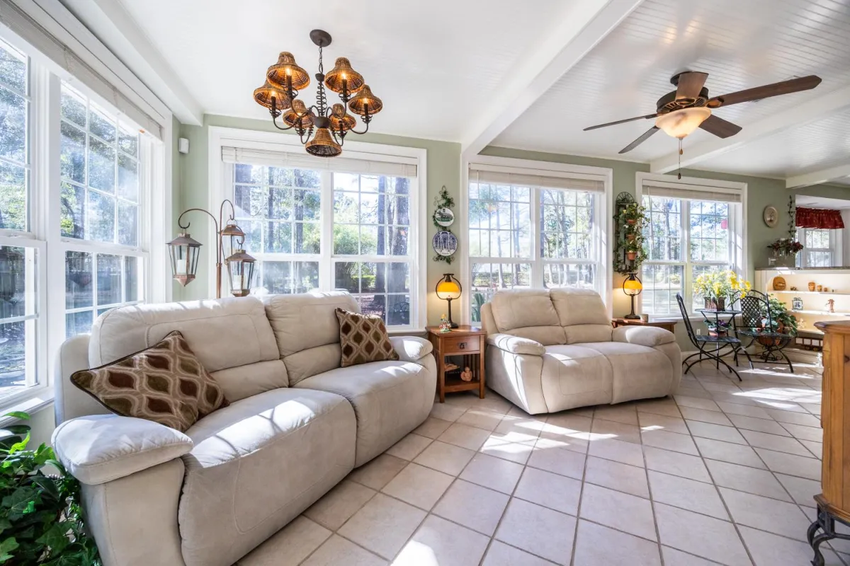 Additional highlights include a new roof installed in 2025 with four Velux skylights, double-pane vinyl windows, an oversized