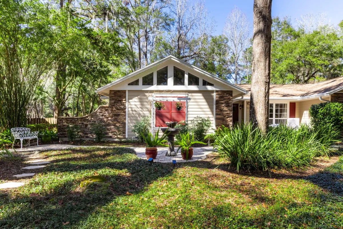 As you approach the generous front porch you can enjoy the subtle sounds of the fountain.
