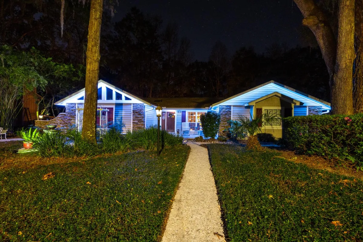 The property boasts many smart home features such as Wi-Fi-controlled HVAC, hot water heater, lawn sprinkler system, and outdoor motion-detection LED floodlights with cameras.